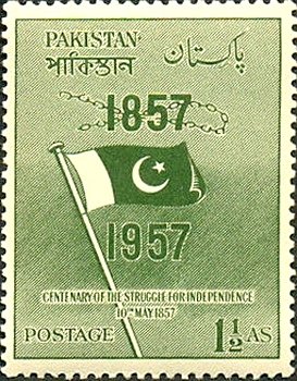Visibility: public Image owner: none postage 5/10/1957 1 1/2a grn d=flag & broken chain unwmk perf=13 Crops No visible images cropped from this one. Measurements Resolution is unknown. Source Source name: Colnect File URL: http://i.colnect.net/b/2160/705/Pakistan-Flag.jpg Uploaded July 5, 2014, 4:00 pm by Stan Shebs |