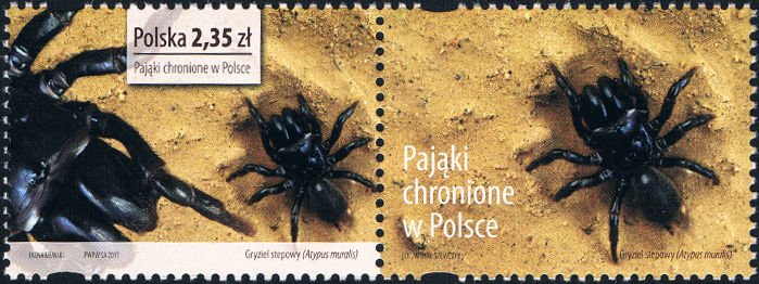 Visibility: public Image owner: none postage 11/29/2013 2.35z multi issue=Endangered species of spiders in Poland d=Gryziela of steppe Atypus muralis unwmk Crops No visible images cropped from this one. Measurements Resolution is unknown. Source Source name: Colnect File URL: http://i.colnect.net/images/b/1948/103/Gryziela-of-steppe-Atypus-muralis.jpg Uploaded July 6, 2014, 12:41 am by Stan Shebs |