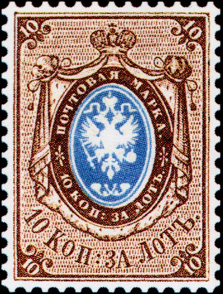 Visibility: public Image owner: none postage 10k brn&bl issue=1866 d=arms of Russia (1857 mantled) wmk=Cyrillic EZGB & wavy lines perf=14.5-15 paper=horizontally laid Crops No visible images cropped from this one. Measurements Resolution is unknown. Source Source name: Colnect File URL: http://i.colnect.net/b/2150/696/Coat-of-Arms-of-Russian-Empire-Postal-Dep-with-Mantle.jpg Uploaded July 8, 2014, 3:58 pm by Stan Shebs |