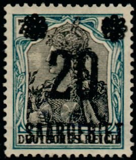 Visibility: public Image owner: none postage 2/4/1921 20pf grn&blk d=Germania (Deutsches Reich) oc=blk on=issuer=Germany-75pf-grn&blk wmk=lozenges perf=14 Crops No visible images cropped from this one. Measurements Resolution is unknown. Source Source name: Colnect File URL: http://i.colnect.net/b/880/088/Overprint--SAARGEBIET----surchargeB-20-on-75pf.jpg Uploaded August 22, 2014, 4:56 pm by Stan Shebs |