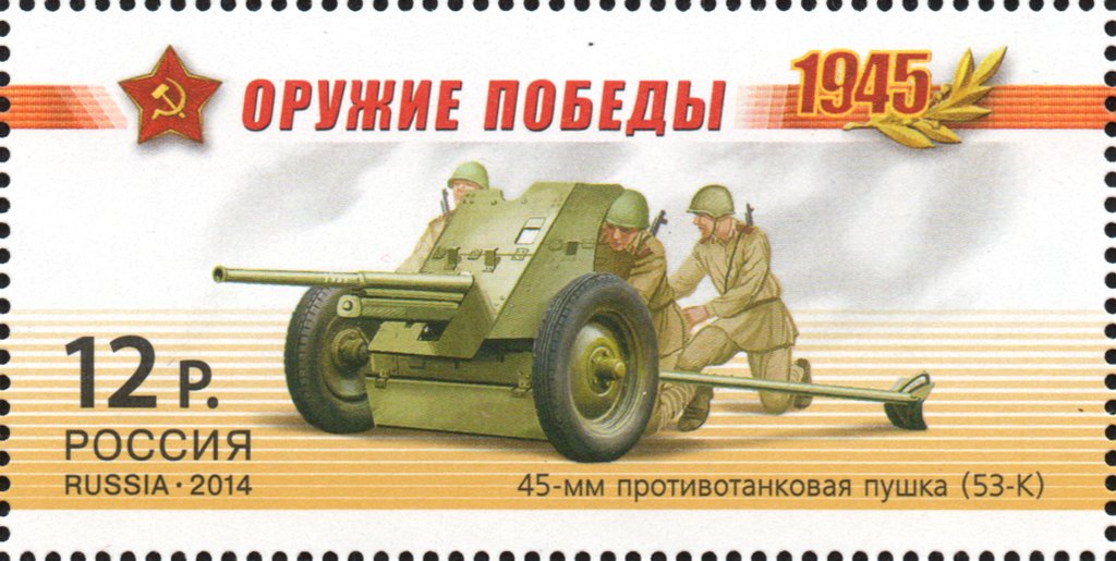 Visibility: public Image owner: none postage 4/25/2014 12.00r multi issue=70th Anniversary of the Victory in the Great Patriotic War unwmk Crops No visible images cropped from this one. Measurements Resolution is unknown. Source Source name: Colnect File URL: http://i.colnect.net/b/2126/697/45-mm-anti-tank-gun-53-K-Artillery.jpg Uploaded July 8, 2014, 4:59 pm by Stan Shebs |