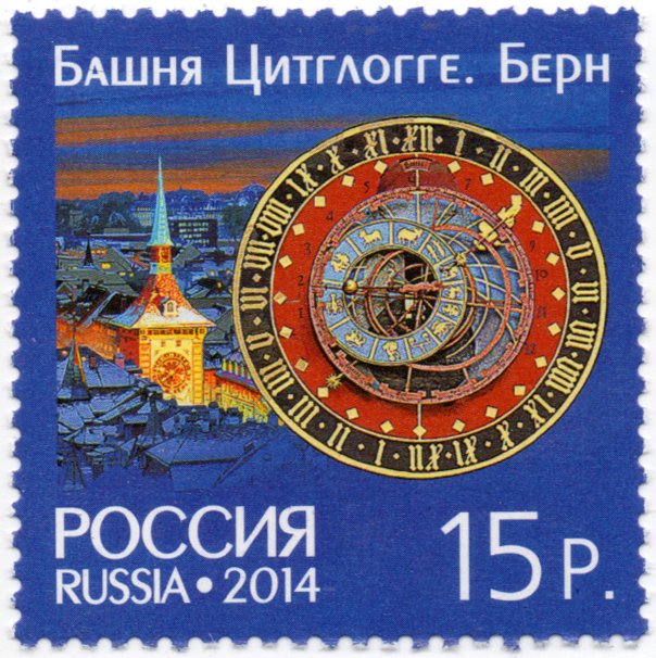 Visibility: public Image owner: none postage 5/21/2014 15r multi issue=Joint issue of the Russian Federation and the Swiss Confederation. Architecture.Tower Clocks unwmk Crops No visible images cropped from this one. Measurements Resolution is unknown. Source Source name: Colnect File URL: http://i.colnect.net/b/2125/180/Zytglogge-Clock-Tower-in-Bern.jpg Uploaded July 8, 2014, 4:59 pm by Stan Shebs |