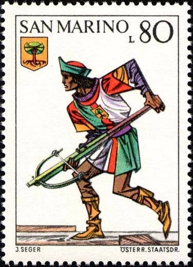 Visibility: public Image owner: none postage 11/7/1973 80l multi dt=arms & historical uniforms unwmk Crops No visible images cropped from this one. Measurements Resolution is unknown. Source Source name: Colnect File URL: http://i.colnect.net/b/1685/976/Crossbowman-Faetano-Castle.jpg Uploaded July 9, 2014, 7:22 pm by Stan Shebs |