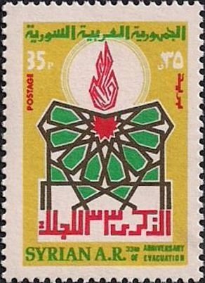 Visibility: public Image owner: none postage 6/25/1979 35p multi issue=33rd Anniversary of Evacuation of British and French Troops from Syria unwmk Crops No visible images cropped from this one. Measurements Resolution is unknown. Source Source name: Colnect File URL: http://i.colnect.net/images/b/2157/732/Emblem.jpg Uploaded July 12, 2014, 12:05 am by Stan Shebs |