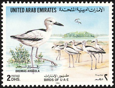 Visibility: public Image owner: none postage 12/12/1994 250f multi dt=birds (1994 United Arab Emirates) d=Coracias benghalensis unwmk perf=13.5x14 Crops No visible images cropped from this one. Measurements Resolution is unknown. Source Source name: Colnect File URL: http://i.colnect.net/b/1639/720/Crab-plover-Dromas-ardeola.jpg Uploaded July 14, 2014, 5:19 pm by Stan Shebs |