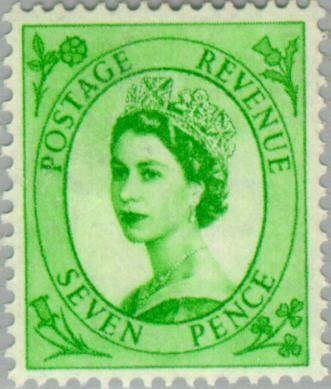 Visibility: public Image owner: none postage 7p emer issue=1958 d=Queen Elizabeth II (Wilding d) wmk=St Edwards crown mult Crops No visible images cropped from this one. Measurements Resolution is unknown. Source Source name: Colnect File URL: http://i.colnect.net/b/121/539/Queen-Elizabeth-II---Predecimal-Wilding.jpg Uploaded August 22, 2014, 5:50 pm by Stan Shebs |