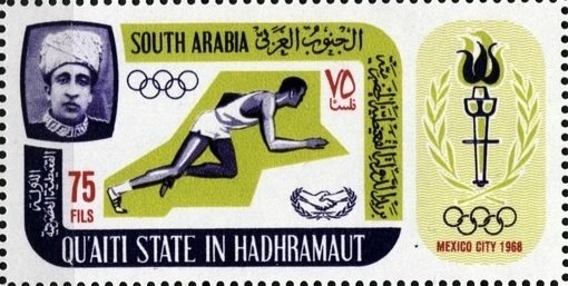 Visibility: public Image owner: none postage 2/1967 75f vio&yelol&red issue=1968 Summer Olympics, Mexico d=Runner, Olympic flame unwmk perf=13 Crops No visible images cropped from this one. Measurements Resolution is unknown. Source Source name: Colnect File URL: http://i.colnect.net/b/1786/331/Olympic-Summer-Games-1968-Mexico.jpg Uploaded July 17, 2014, 10:46 pm by Stan Shebs |