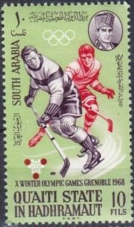 Visibility: public Image owner: none postage 11/26/1967 10f multi issue=Olympic Winter Games, Grenoble a d=Ice Hockey unwmk perf=13.5x13 Crops No visible images cropped from this one. Measurements Resolution is unknown. Source Source name: Colnect File URL: http://i.colnect.net/b/1786/322/Olympic-Winter-Games-Grenoble-1968.jpg Uploaded July 17, 2014, 10:46 pm by Stan Shebs |