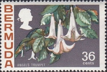 Visibility: public Image owner: none postage 7/6/1970 36c multi dt=flowers (1970 Bermuda) d=Angels trumpet wmk=mult crown & script CA perf=14 Crops No visible images cropped from this one. Measurements Resolution is unknown. Source Source name: Colnect File URL: http://i.colnect.net/images/b/2073/061/Angel--s-trumpet.jpg Uploaded July 17, 2014, 11:25 pm by Stan Shebs |