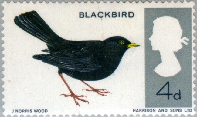 Visibility: public Image owner: none postage 8/8/1966 4d multi dt=birds (1966 Great Britain) d=European blackbird wmk=St Edwards crown mult Crops No visible images cropped from this one. Measurements Resolution is unknown. Source Source name: Colnect File URL: http://i.colnect.net/b/121/672/Common-Blackbird-Turdus-merula---Phosphor.jpg Uploaded October 20, 2012, 11:37 pm by Stan Shebs |