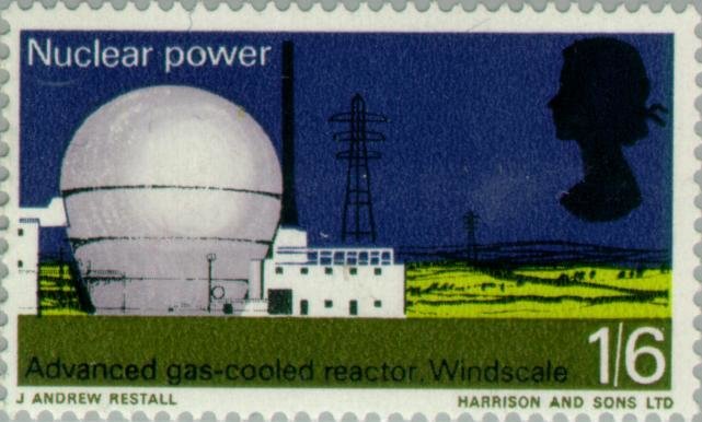 Visibility: public Image owner: none postage 9/19/1966 1sh6p multi dt=British technology d=Windscale Reactor wmk=St Edwards crown mult Crops No visible images cropped from this one. Measurements Resolution is unknown. Source Source name: Colnect File URL: http://i.colnect.net/b/121/679/Windscale-Reactor-phosphor.jpg Uploaded October 20, 2012, 11:37 pm by Stan Shebs |