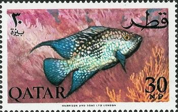 Visibility: public Image owner: none postage 10/18/1965 30np multi dt=fishes (1965 Qatar) d=Texas cichlid Cichlasoma cyanoguttatum unwmk perf=14x14.5 Crops No visible images cropped from this one. Measurements Resolution is unknown. Source Source name: Colnect File URL: http://i.colnect.net/b/2175/271/Texas-Cichlid-Cichlasoma-cyanoguttatum.jpg Uploaded July 22, 2014, 5:34 pm by Stan Shebs |