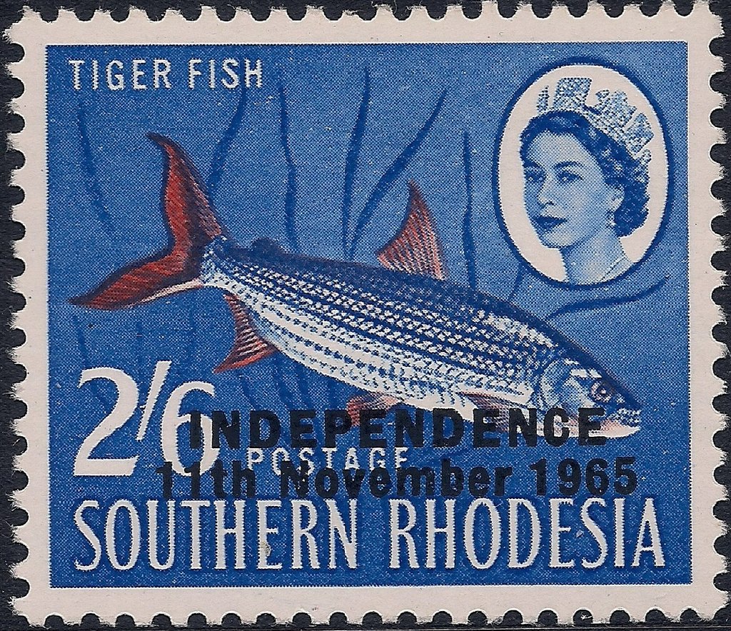 Visibility: public Image owner: none postage 1/17/1966 2sh6p dpbl&red issue=independence d=tiger fish (1964) ovpt=INDEPENDENCE//11th November 1966 oc=blk on=issuer=Southern Rhodesia-issue=1964-2sh6p Crops No visible images cropped from this one. Measurements Resolution is unknown. Source Source name: Colnect File URL: http://i.colnect.net/b/2123/870/Tiger-Fish-Hydrocyon-lineatus---overprinted.jpg Uploaded July 29, 2014, 5:52 am by Stan Shebs |