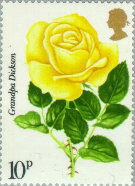 Visibility: public Image owner: none postage 6/30/1976 10p multi issue=Royal National Rose Society 100th d=Grandpa Dickson rose unwmk perf=14.25x14.75 Crops No visible images cropped from this one. Measurements Resolution is unknown. Source Source name: Colnect File URL: http://i.colnect.net/b/122/022/Grandpa-Dickson.jpg Uploaded October 21, 2012, 7:11 am by Stan Shebs |