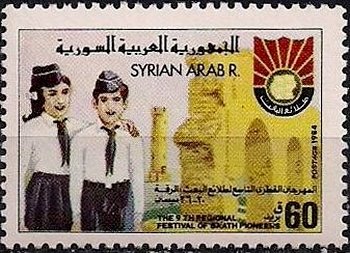 Visibility: public Image owner: none postage 6/14/1984 60p multi issue=9th Regional Festival of Al Baath Pioneers unwmk Crops No visible images cropped from this one. Measurements Resolution is unknown. Source Source name: Colnect File URL: http://i.colnect.net/images/b/2213/035/Pioneers.jpg Uploaded September 18, 2014, 7:50 pm by Stan Shebs |