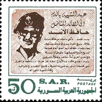 Visibility: public Image owner: none postage 10/2/1984 50p multi issue=Revolutionary Youth Union Congress unwmk Crops No visible images cropped from this one. Measurements Resolution is unknown. Source Source name: Colnect File URL: http://i.colnect.net/images/b/2213/046/Pres-Hafez-al-Assad.jpg Uploaded September 18, 2014, 7:50 pm by Stan Shebs |