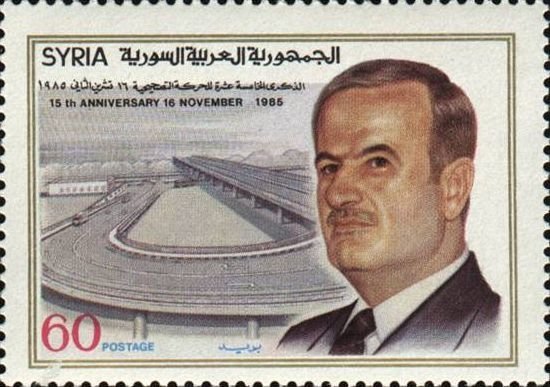 Visibility: public Image owner: none postage 11/16/1985 60p multi issue=15th Anniversary of Revolution of 16 November 1970 unwmk Crops No visible images cropped from this one. Measurements Resolution is unknown. Source Source name: Colnect File URL: http://i.colnect.net/images/b/2211/849/Pres-Hafez-al-Assad.jpg Uploaded September 18, 2014, 7:51 pm by Stan Shebs |