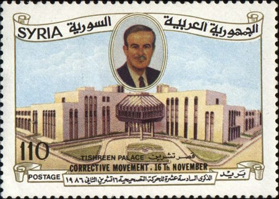 Visibility: public Image owner: none postage 11/16/1986 110p multi issue=16th Anniversary of Revolution of 16 November 1970 unwmk Crops No visible images cropped from this one. Measurements Resolution is unknown. Source Source name: Colnect File URL: http://i.colnect.net/b/2210/617/Pres-Assad-Tishreen-Palace.jpg Uploaded September 18, 2014, 7:52 pm by Stan Shebs |