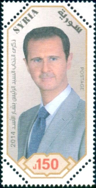 Visibility: public Image owner: none postage 7/14/2014 150lb multi issue=Re-election of the President of the Republic, Mr. Bachar el-Assad unwmk Crops No visible images cropped from this one. Measurements Resolution is unknown. Source Source name: Colnect File URL: http://i.colnect.net/b/2253/401/President-Bashar-al-Assad.jpg Uploaded September 18, 2014, 9:21 pm by Stan Shebs |