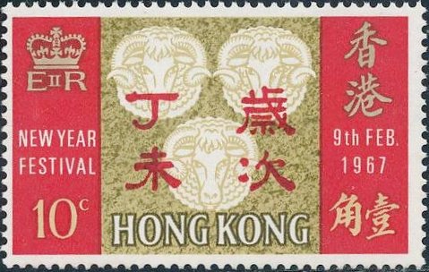 Visibility: public Image owner: none postage 1/17/1967 10c multi issue=Year of the Ram 1967 wmk=St Edwards crown & CA perf=14.5 Crops No visible images cropped from this one. Measurements Resolution is unknown. Source Source name: Colnect File URL: http://i.colnect.net/b/832/056/New-Year.jpg Uploaded August 22, 2014, 6:29 pm by Stan Shebs |