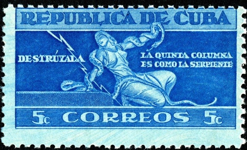 Visibility: public Image owner: none postage 7/5/1943 5c brtbl issue=anti-5th column d=Destroy it The Fifth Column is like a Serpent wmk=star (Cuba) perf=10 Crops No visible images cropped from this one. Measurements Resolution is unknown. Source Source name: Colnect File URL: http://i.colnect.net/b/2210/581/Destroy-it-The-Fifth-Column-is-like-a-Serpent.jpg Uploaded September 18, 2014, 11:32 pm by Stan Shebs |