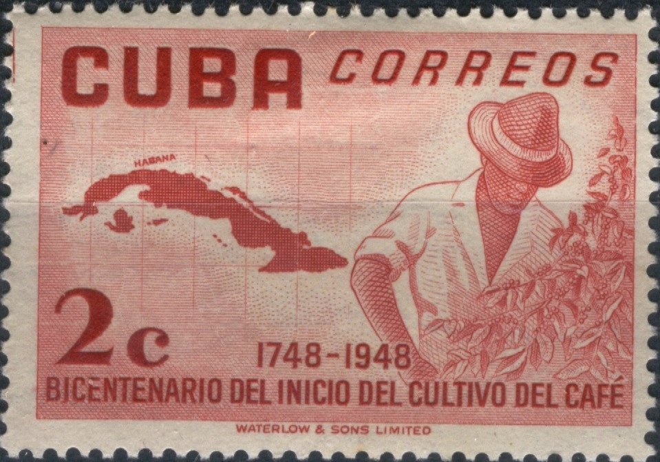 Visibility: public Image owner: none postage 8/22/1952 2c rosered issue=coffee production 200th d=map of Cuba & Man Picking Coffee Beans wmk=star (Cuba) perf=13.5 Crops No visible images cropped from this one. Measurements Resolution is unknown. Source Source name: Colnect File URL: http://i.colnect.net/b/2155/503/Map-and-Man-Picking-Coffee-Beans.jpg Uploaded September 18, 2014, 11:38 pm by Stan Shebs |