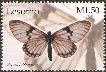 Visibility: public Image owner: none postage 5/17/2004 1.50m multi issue=Butterflies 2004 dt=butterflies (2004 Lesotho) d=Acraea rabbaiae wmk=basuto hat perf=14.25 Crops No visible images cropped from this one. Measurements Resolution is unknown. Source Source name: Colnect File URL: http://i.colnect.net/b/2245/911/Clear-Wing-Acraea-Acraea-rabbaiae.jpg Uploaded September 23, 2014, 10:17 pm by Stan Shebs |