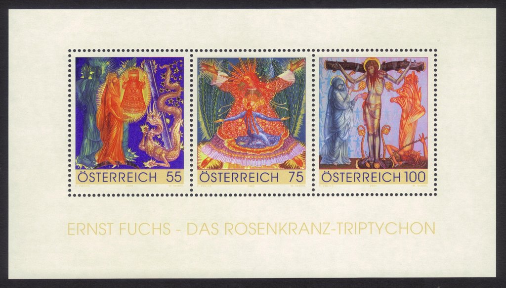 Visibility: public Image owner: none Crops No visible images cropped from this one. Measurements Resolution is unknown. Source Source name: Colnect File URL: http://i.colnect.net/b/2195/719/Rosary-Triptych-by-Ernst-Fuchs.jpg Uploaded October 3, 2014, 6:30 pm by Stan Shebs |