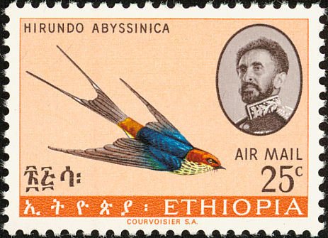Visibility: public Image owner: none airmail 9/29/1967 25c multi dt=birds (1967 Ethiopia) d=Cecropis abyssinica unwmk perf=11.75 Crops No visible images cropped from this one. Measurements Resolution is unknown. Source Source name: Colnect File URL: http://i.colnect.net/b/2269/906/Lesser-Striped-Swallow-Cecropis-abyssinica.jpg Uploaded October 3, 2014, 7:37 pm by Stan Shebs |