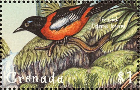 Visibility: public Image owner: none postage 3/1/2000 $1 multi dt=birds of Grenada d=Icterus icterus (2000) wmk=St Edwards crown & CA perf=13.5 Crops No visible images cropped from this one. Measurements Resolution is unknown. Source Source name: Colnect File URL: http://i.colnect.net/images/b/2192/585/Venezuelan-Troupial-Icterus-icterus.jpg Uploaded October 18, 2014, 4:58 pm by Stan Shebs |