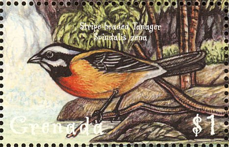 Visibility: public Image owner: none postage 3/1/2000 $1 multi dt=birds of Grenada d=stripe-headed tanager Spindalis zena (2000) wmk=St Edwards crown & CA perf=13.5 Crops No visible images cropped from this one. Measurements Resolution is unknown. Source Source name: Colnect File URL: http://i.colnect.net/images/b/2192/595/Western-Spindalis-Spindalis-zena.jpg Uploaded October 18, 2014, 4:58 pm by Stan Shebs |