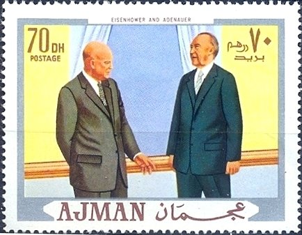 Visibility: public Image owner: none postage 9/30/1970 70dh multi issue=Dwight David Eisenhower unwmk Crops No visible images cropped from this one. Measurements Resolution is unknown. Source Source name: Colnect File URL: http://i.colnect.net/images/b/2272/555/Eisenhower-and-Adenauer.jpg Uploaded October 21, 2014, 3:07 pm by Stan Shebs |