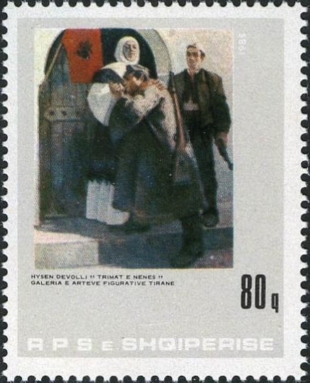 Visibility: public Image owner: none postage 6/25/1985 80q multi dt=paintings from the Art Gallery in Tirana d=Heroes with Mother by Hysen Devolli unwmk perf=12.5x12.25 Crops No visible images cropped from this one. Measurements Resolution is unknown. Source Source name: Colnect File URL: http://i.colnect.net/b/2195/672/The-Heroes-by-Hysen-Devolli.jpg Uploaded October 21, 2014, 5:22 pm by Stan Shebs |