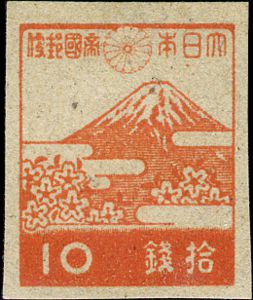 Visibility: public Image owner: none postage 4/1945 10s sal issue=1945 pictorials d=Mt Fuji & cherry blossoms (1945) wmk=curved wavy lines imperf Crops No visible images cropped from this one. Measurements Resolution is unknown. Source Source name: Colnect (old) File URL: http://i.colnect.net/images/f/823/256/Mt-Fuji.jpg Uploaded October 24, 2012, 3:23 am by Stan Shebs |