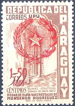Visibility: public Image owner: none postage 5/15/1959 1.50g carbrn issue=1959 provisional dt=Jesuit ruins d=Tower Santa Marina oc=blk on=6/19/1955-50c unwmk perf=12.5 Crops No visible images cropped from this one. Measurements Resolution is unknown. Source Source name: Colnect File URL: http://i.colnect.net/b/2309/624/Jesuit-Ruins-stamps-of-1955-surcharged.jpg Uploaded October 26, 2014, 2:47 pm by Stan Shebs |