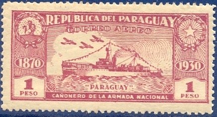 Visibility: public Image owner: none airmail 8/15/1931 1p issue=1931 air a d=gunboat Paraguay unwmk perf=12 Crops No visible images cropped from this one. Measurements Resolution is unknown. Source Source name: Colnect File URL: http://i.colnect.net/b/2301/249/Gunboat--quot-Paraguay-quot-.jpg Uploaded October 26, 2014, 2:57 pm by Stan Shebs |