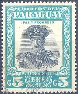 Visibility: public Image owner: none postage 8/15/1958 5g blgrn&blk issue=Stroessner reelection d=Alfredo Stroessner wmk=interlacing lines perf=13.5 Crops No visible images cropped from this one. Measurements Resolution is unknown. Source Source name: Colnect File URL: http://i.colnect.net/images/b/2309/623/Re-election-of-the-President-Stroessner.jpg Uploaded October 26, 2014, 3:21 pm by Stan Shebs |