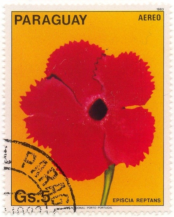 Visibility: public Image owner: none airmail 8/31/1983 5g multi dt=flowers (1983 Paraguay) d=Episcia reptans unwmk perf=14 Crops No visible images cropped from this one. Measurements Resolution is unknown. Source Source name: Colnect File URL: http://i.colnect.net/b/2234/955/Episcia-reptans.jpg Uploaded October 26, 2014, 3:52 pm by Stan Shebs |