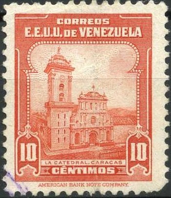 Visibility: public Image owner: none postage 10c red issue=Bolivar death 100th 1947 unwmk perf=12 Crops No visible images cropped from this one. Measurements Resolution is unknown. Source Source name: Colnect File URL: http://i.colnect.net/b/2296/551/Cathedral-of-Caracas.jpg Uploaded October 26, 2014, 7:27 pm by Stan Shebs |