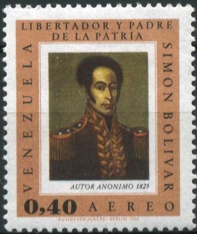Visibility: public Image owner: none airmail 10/14/1966 0.40b multi issue=Bolivar 1966 unwmk perf=14 Crops No visible images cropped from this one. Measurements Resolution is unknown. Source Source name: Colnect File URL: http://i.colnect.net/b/2299/555/Simon-Bolivar.jpg Uploaded October 26, 2014, 8:18 pm by Stan Shebs |