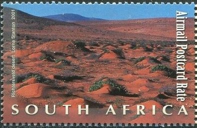 Visibility: public Image owner: none postage 9/6/2001 2.10r airmail postcard multi issue=Natural Wonders of South Africa unwmk Crops No visible images cropped from this one. Measurements Resolution is unknown. Source Source name: Colnect File URL: http://i.colnect.net/b/2220/830/Richtersveld-Desert.jpg Uploaded October 27, 2014, 2:33 am by Stan Shebs |