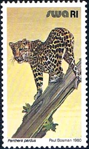 Visibility: public Image owner: none postage 10/1/1980 1r multi issue=1980 dt=wild mammals d=Panthera pardus (1980) wmk=RSA in triangle Crops No visible images cropped from this one. Measurements Resolution is unknown. Source Source name: Colnect File URL: http://i.colnect.net/b/2221/702/Leopard-Panthera-pardus.jpg Uploaded October 27, 2014, 3:59 pm by Stan Shebs |