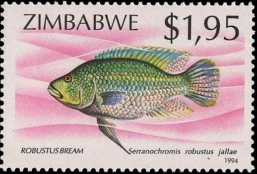 Visibility: public Image owner: none postage 1/20/1994 $1.95 multi dt=fishes (1994 Zimbabwe) d=Serranochromis robustus unwmk perf=14.25 Crops No visible images cropped from this one. Measurements Resolution is unknown. Source Source name: Colnect File URL: http://i.colnect.net/b/2311/441/Yellow-belly-Bream-Serranochromis-robustus.jpg Uploaded October 30, 2014, 3:53 pm by Stan Shebs |