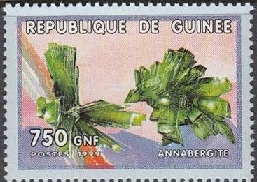 Visibility: public Image owner: none postage 10/6/1999 750fr multi issue=Minerals 1999 dt=minerals (1999 Guinea) d=Annabergite unwmk perf=13.25 Crops No visible images cropped from this one. Measurements Resolution is unknown. Source Source name: Colnect File URL: http://i.colnect.net/b/2242/037/Annabergite.jpg Uploaded November 1, 2014, 3:24 pm by Stan Shebs |