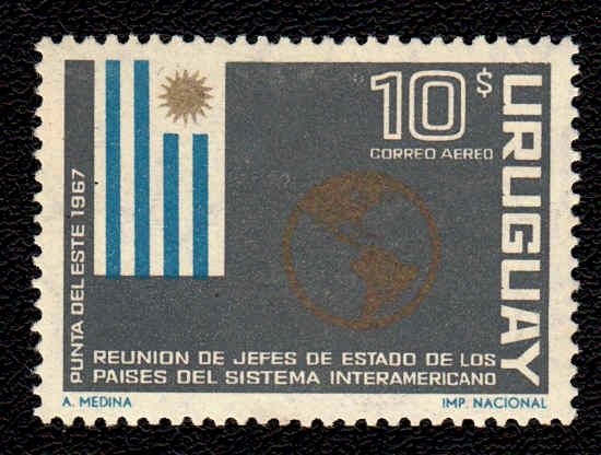 Visibility: public Image owner: none airmail 4/8/1967 10p multi issue=Heads of State Meeting, Punta del Este wmk=large sun & ROU Crops No visible images cropped from this one. Measurements Resolution is unknown. Source Source name: Colnect File URL: http://i.colnect.net/b/2216/045/Flag-of-Uruguay-Globe-showing-Americas.jpg Uploaded November 18, 2014, 4:42 am by Stan Shebs |
