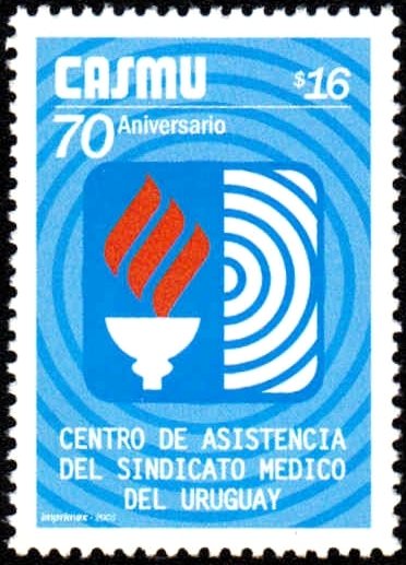 Visibility: public Image owner: none postage 7/19/2005 $16 multi issue=70th Anniversary of Health Insurance "Sindicato Medico del Uruguay" unwmk Crops No visible images cropped from this one. Measurements Resolution is unknown. Source Source name: Colnect File URL: http://i.colnect.net/b/2299/446/CASMU-logo-type-I.jpg Uploaded November 18, 2014, 4:15 pm by Stan Shebs |