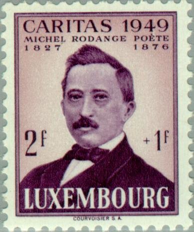 Visibility: public Image owner: none semipostal 12/5/1949 2+25fr pur&yel issue=Caritas 1949 d=Michel Rodange unwmk perf=11.5 Crops No visible images cropped from this one. Measurements Resolution is unknown. Source Source name: Colnect File URL: http://i.colnect.net/b/133/776/Michel-Rodange.jpg Uploaded August 22, 2014, 9:56 pm by Stan Shebs |