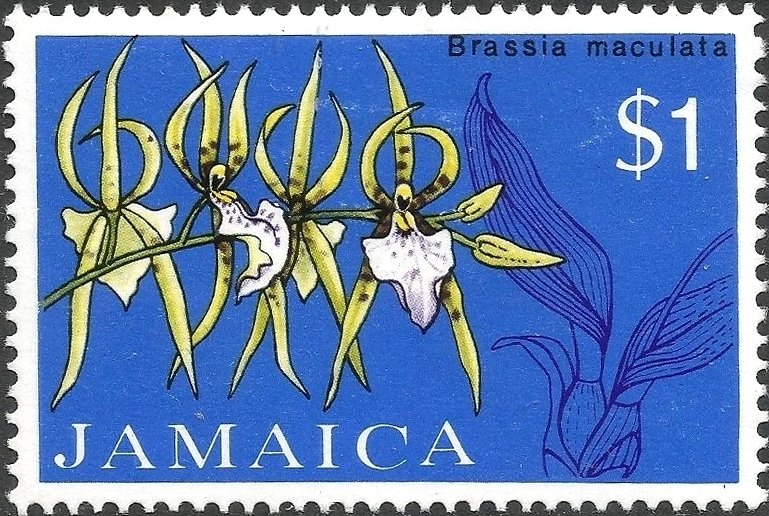 Visibility: public Image owner: none postage 10/8/1973 $1 multi dt=orchids (1973 Jamaica) d=Brassia maculata wmk=Multiple "J" & Pineapple Crops No visible images cropped from this one. Measurements Resolution is unknown. Source Source name: Colnect File URL: http://i.colnect.net/images/b/2249/660/Brassia-maculata.jpg Uploaded November 19, 2014, 3:52 pm by Stan Shebs |
