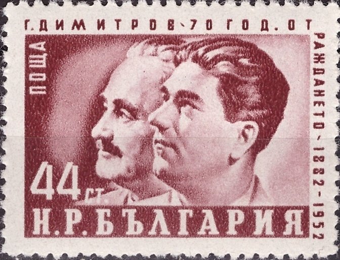 Visibility: public Image owner: none postage 6/18/1952 44s brncar issue=Dimitrov 70th unwmk Crops No visible images cropped from this one. Measurements Resolution is unknown. Source Source name: Colnect File URL: http://i.colnect.net/images/b/2158/102/G-Dimitrov--amp--V-Cervenkov.jpg Uploaded November 20, 2014, 8:53 pm by Stan Shebs |