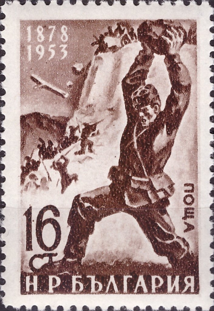 Visibility: public Image owner: none postage 3/3/1953 16s dpbrn issue=Bulgarian independence 75th d=soldier throwing rock unwmk perf=10.75 Crops No visible images cropped from this one. Measurements Resolution is unknown. Source Source name: Colnect File URL: http://i.colnect.net/images/b/2071/593/Defense-of-Shipka-Pass.jpg Uploaded November 20, 2014, 8:54 pm by Stan Shebs |